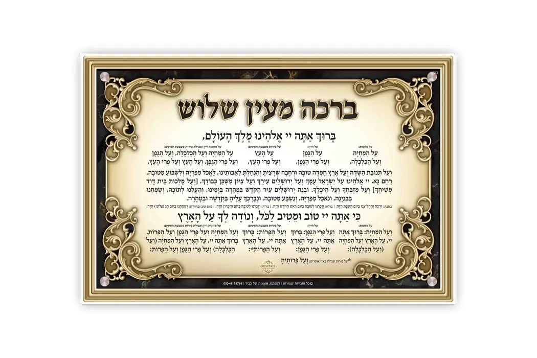 ברכת מעין שלוש בהדפסה על זכוכית מחוסמת בעובי 6 מ"מ ומגיע עם ערכה של ברגים וספייסרים לתליה