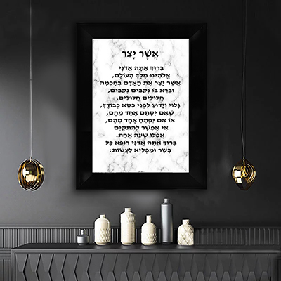 כמות של 2347 - ברכת אשר יצר על רקע שיש לבן להדפסה על קנבס או זכוכית