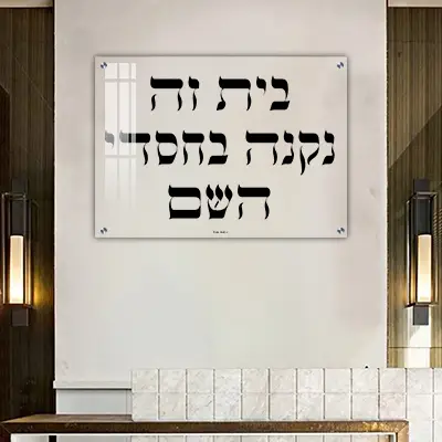 2787 – כיתוב:"בית זה נקנה בחסדי השם" על זכוכית שקופה אקסטרה קליר