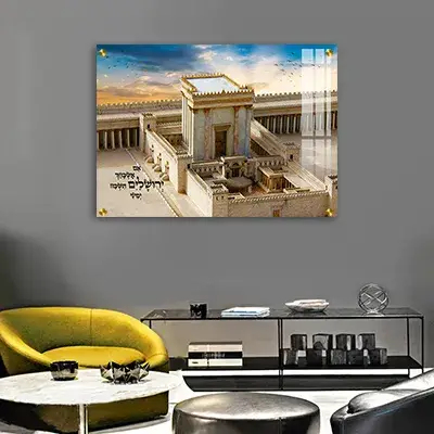 / 3064 – תמונה של בית המקדש עם כיתוב: אם אשכחך ירושלים….להדפסה על קנבס או זכוכית