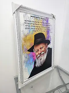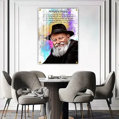 699 – ציור מודרני וצבעוני של הרבי מליובאוויטש מחייך בשילוב מזמור לתודה